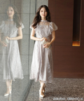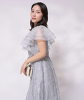 ふんわりと重ねたボリューミーなラッフルフリルの袖も、装いに華感をプラスしてくれます。