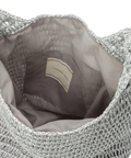 メタリックな輝きが存在感を放つクロシェバッグ。