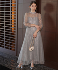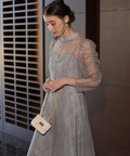 ほんのり肌の透けるチュールとコルセットデザインが、レディムードを加速させるドレス。