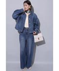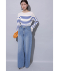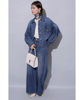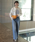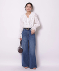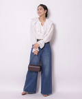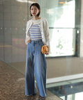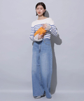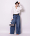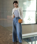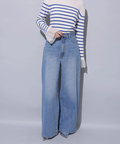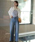 気になるレッグラインもカバーするワイドシルエットのデニムパンツ。