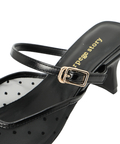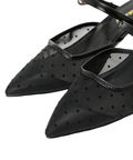 シアーなチュールとトゥの切替デザインがポイントになったミュール。
