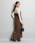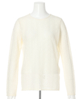 顔周りや首のラインをすっきりと見せるシンプルなラウンドネックデザイン。