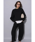 カーブを描くシルエットが女性らしさを引き立てるパンツ。