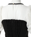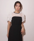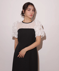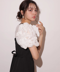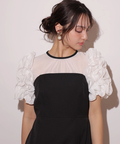 くしゅっとしたフリルスリーブが華やかな女性らしさを演出するワンピース。
