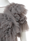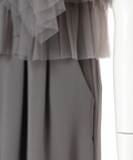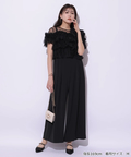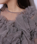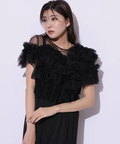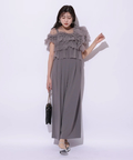 チュールの柔らかなボリュームフリルが華やかに装うサロペット。