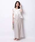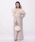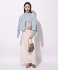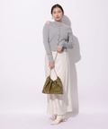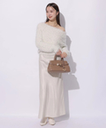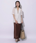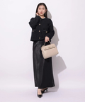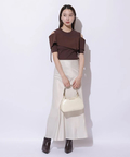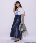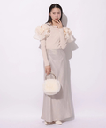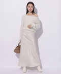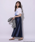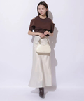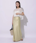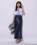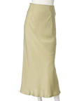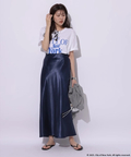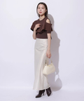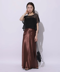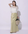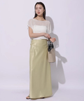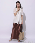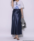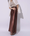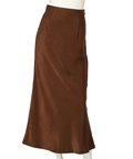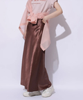 滑らかな光沢感のあるピーチサテン素材が上品な風合いを放つスカート。