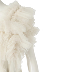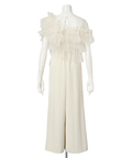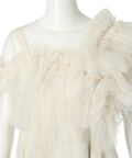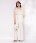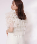 チュールの柔らかなボリュームフリルが華やかに装うサロペット。