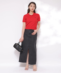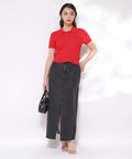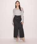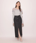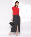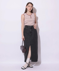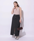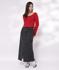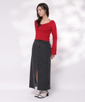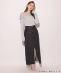 大胆にあしらわれたスリットが抜け感のある印象を与えるスカート。