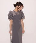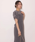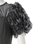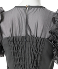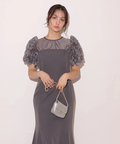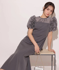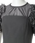 くしゅっとしたフリルスリーブが華やかな女性らしさを演出するワンピース。