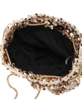 光をキラキラと反射するスパンコールが華やかなバッグ。