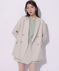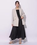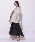 同素材のボトムスとセットアップでスタイリングすれば、よりエレガントな着こなしに◎