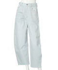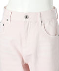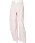 カーブをつけた立体的なシルエットが存在感のあるデニムパンツ。