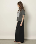 後ろ裾には深めのスリットを加え、ヘルシーな女性らしいヌケ感を演出。