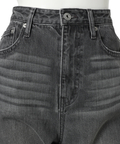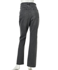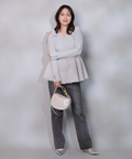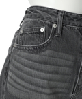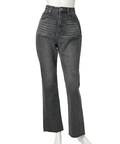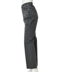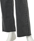 膝周りのサイズを少し小さくして裾に向かって幅がでるデザインなので程よいブーツカットラインでお召しいただけます。