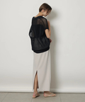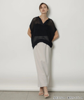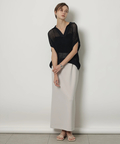 後ろ裾には深めのスリットを加え、ヘルシーな女性らしいヌケ感を演出。