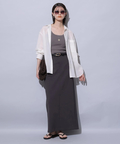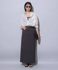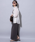 後ろ裾のスリットで足さばきもスムーズ。程よく抜け感もプラスしてくれます。