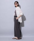 シンプルなデザインで着回し力も高く、ワードローブの定番アイテムとしても重宝する1枚です。