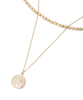 コインモチーフとメタルビーズの2連デザインに仕上げたネックレス。