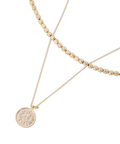 コインモチーフとメタルビーズの2連デザインに仕上げたネックレス。シンプルながらも、チェーンとビーズを組み合わせることで存在感をプラス。カジュアルなTシャツやクリーンなシャツと合わせたりと、オンオフ問わず様々なスタイリングにもバランスよくマッチしてくれるアイテムです。