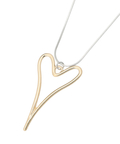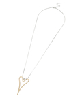 BIGハートモチーフが目を引くペンダント。華奢なメタルラインのモチーフとしなやかなスネークチェーンでエレガントな大人顔を演出。ゴールドとシルバーの組み合わせもおしゃれなアクセントをプラスします。シンプルながらも目を引くデザインで、様々なスタイリングにも活躍してくれるアイテムです。