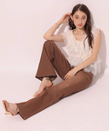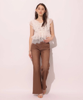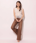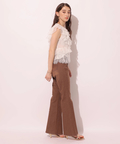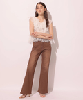 セミフレアなシルエットがエレガントなムードを演出する美脚デニムパンツ。