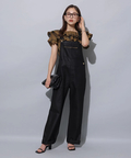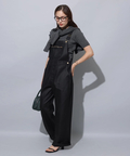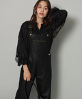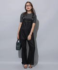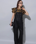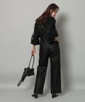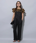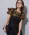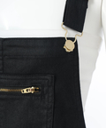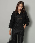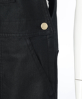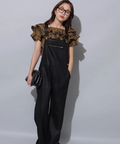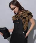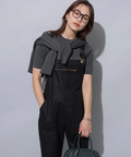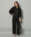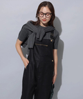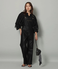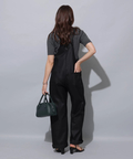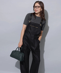 レザーライクなデニムの質感で大人のカジュアルスタイルを演出するオーバーオール。
