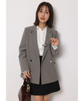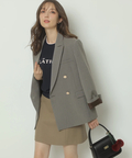 クラシックな印象を与えてくれるダブルブレストデザイン。ゴールドのボタンが上品な華感をプラスしてくれます。