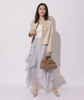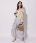 スエードの柔らかな風合いがフェミニンな印象を与えてくれるジャケット。