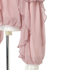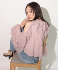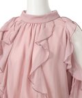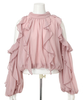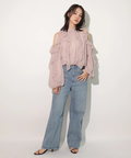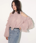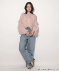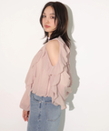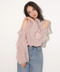ひらりとしたオフショルフリルのデザインが女性らしさを高めるブラウス。