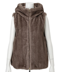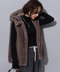 ふわふわのファーがラグジュアリーなムードを漂わせるジップベスト。