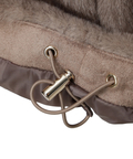 大きめのフードがボリューム感をプラスし、さりげなく小顔効果も期待することができます。