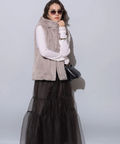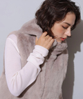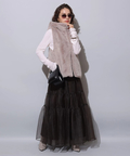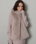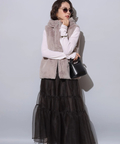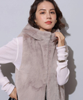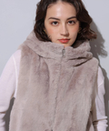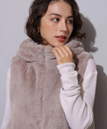 ふわふわのファーがラグジュアリーなムードを漂わせるジップベスト。