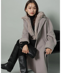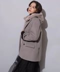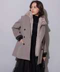 大きめのフードがボリューム感をプラスし、さりげなく小顔効果も期待することができます。