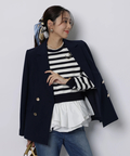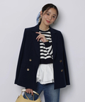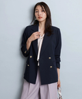 ゴールドのダブルボタンも上品なアクセントをプラス。