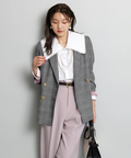 ゴールドのダブルボタンも上品クラシカルなアクセントをプラス。