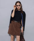 ヴィンテージ感漂う、フェイクレザーで仕立てたミニスカート。