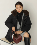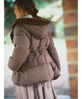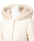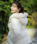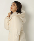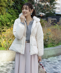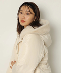 フード部分のファー切り替えが可愛らしいアクセントになるダウンジャケット。