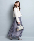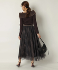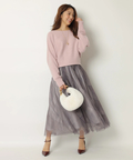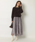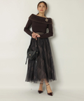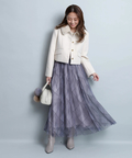 裾に向かって広がるフレアシルエットで、立体感のあるコーディネートを楽しめます。