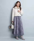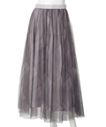 透け感のあるシアーチェック柄が女性らしさを演出するスカート。