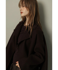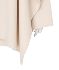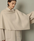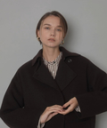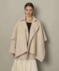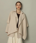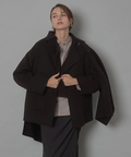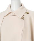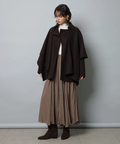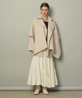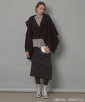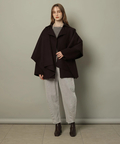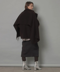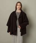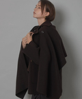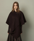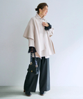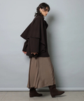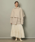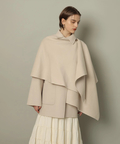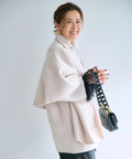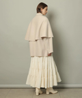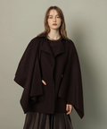 ケープ風デザインのストールは、柔らかな素材感、美しい落ち感で、動くたび揺れることで後ろ姿のシルエットが印象的。