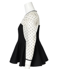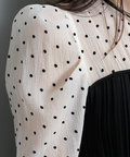 ドット柄のデザインがスタイリングにガーリーな印象を与えます。