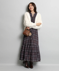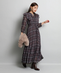 柔らかな肩フリルとティアードデザインで大人の愛らしさを演出するワンピース。