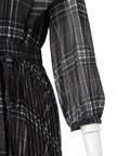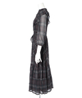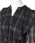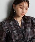 ほんのり透けるシアーなスリーブと揺れ広がるフレア感のあるシルエットで、ドラマチックなスタイリングを演出。