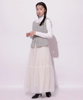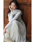 スカート部分はチュール素材を使用し、ふんわりとした印象を与えます。