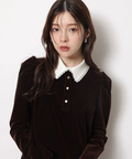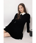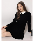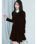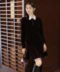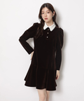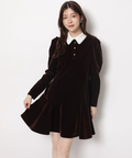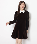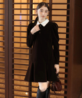 滑らかな手触りのベルベット素材で仕立てられたワンピース。