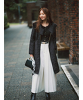 ウエスト部分には切り替えを施しており、メリハリのある印象を与えます。