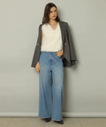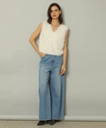 ノースリーブデザインでレイヤードも楽しめ、都会的な着こなしを叶える一枚。