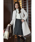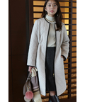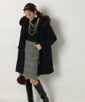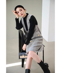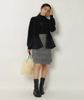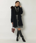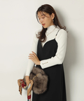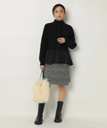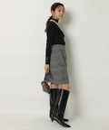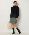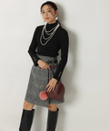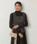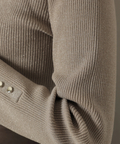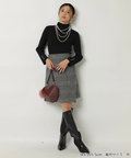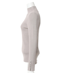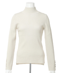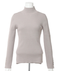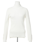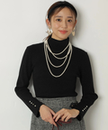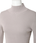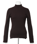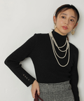 露出控えめなハイネックのデザインが上品な印象を与えるニット。