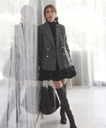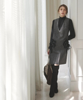 伸縮性に優れたリブ素材を使用し、タイトなフィット感を演出します。