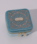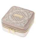 ベルベット調素材に繊細な刺しゅうとパール風モチーフをあしらった、特別感あふれるジュエリーボックス。